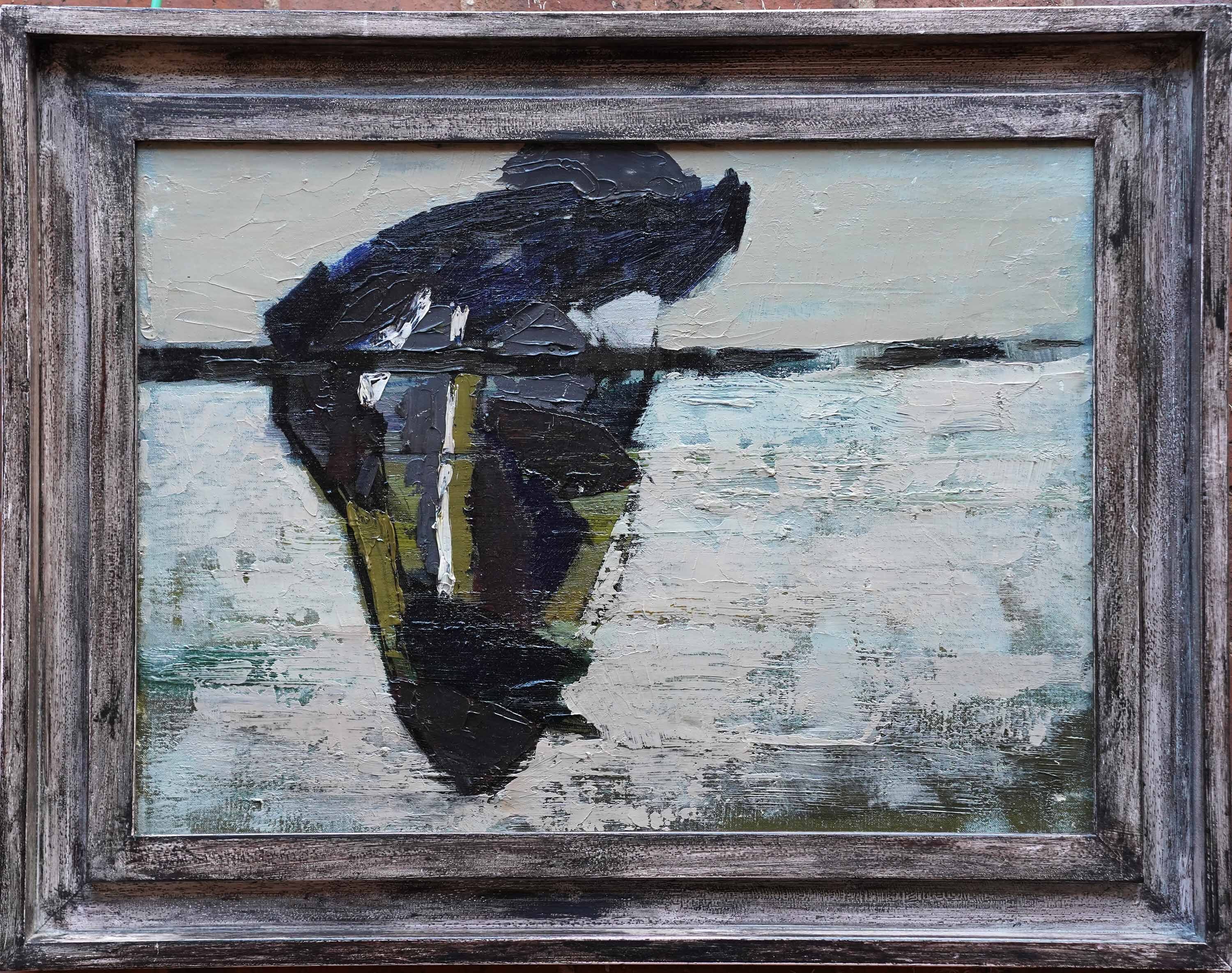 Description | This superb British Abstract oil painting is by artist Peter Field. Painted circa 1955 on canvas and hung as a landscape, the composition is a large shape with multiple shades of brown, green and black, trans-sected by a dark line. The background below the line has multiple layers of beige on green paint and impasto. The impasto is incredibly heavy in places and the brushwork just superb. You have to see this painting to really appreciate the colours and brushwork but it is absolutely stunning and a fantastic example of Field's abstract oil painting from this period. (There is a painting of bananas and fruit verso). Unsigned. |