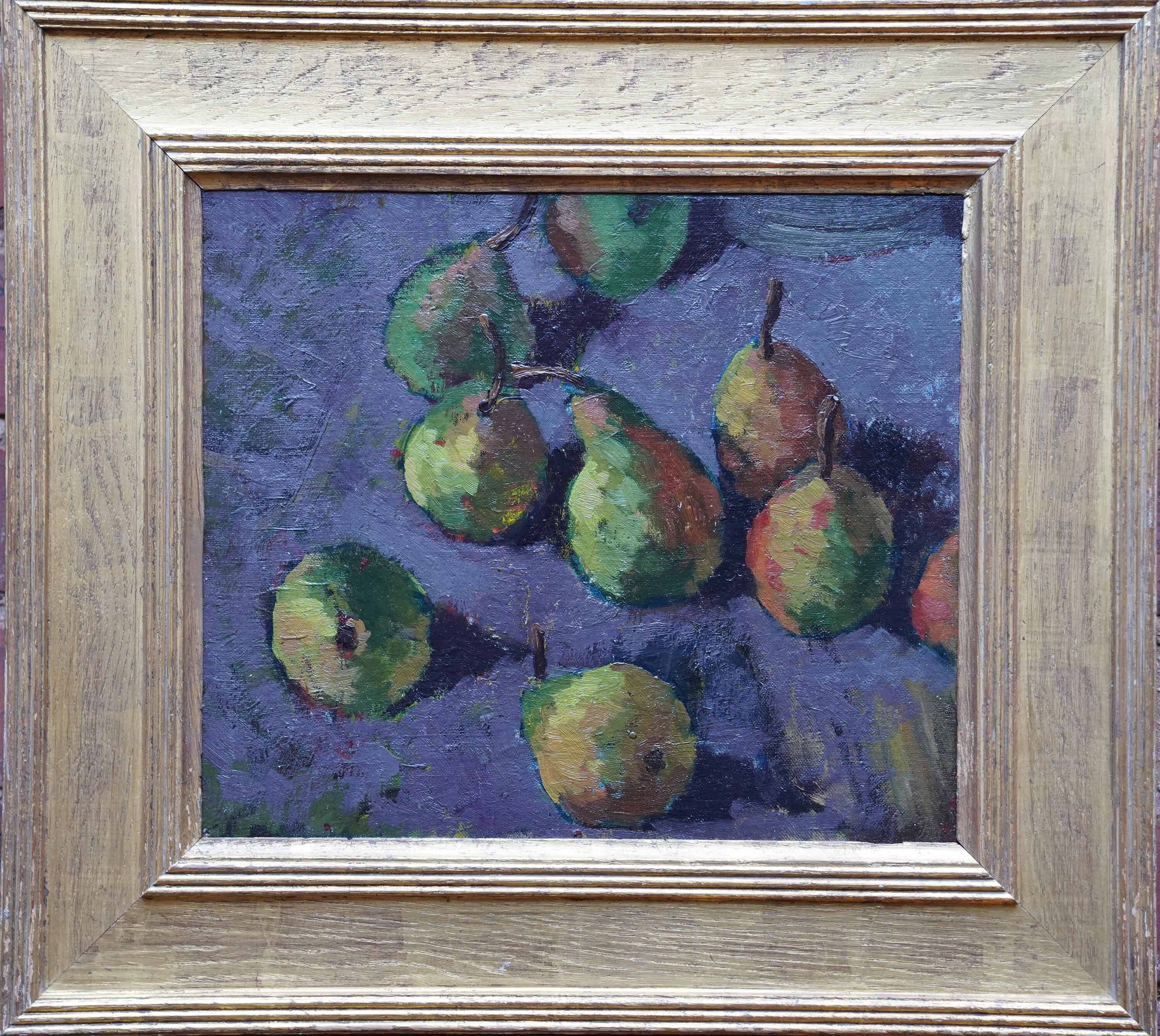 Description | This lovely British Post Impressionist still life oil painting is by artist Peter Field. Painted circa 1955 on board it is a still life of pears on a purple background. It has echoes of Cezanne or Matisse. The pears are really vibrant mix of colours and stand out beautifully on the purple background and the bold brushwork throughout is superb. This is a fine example of Field's still life oil painting from this period. Unsigned. |