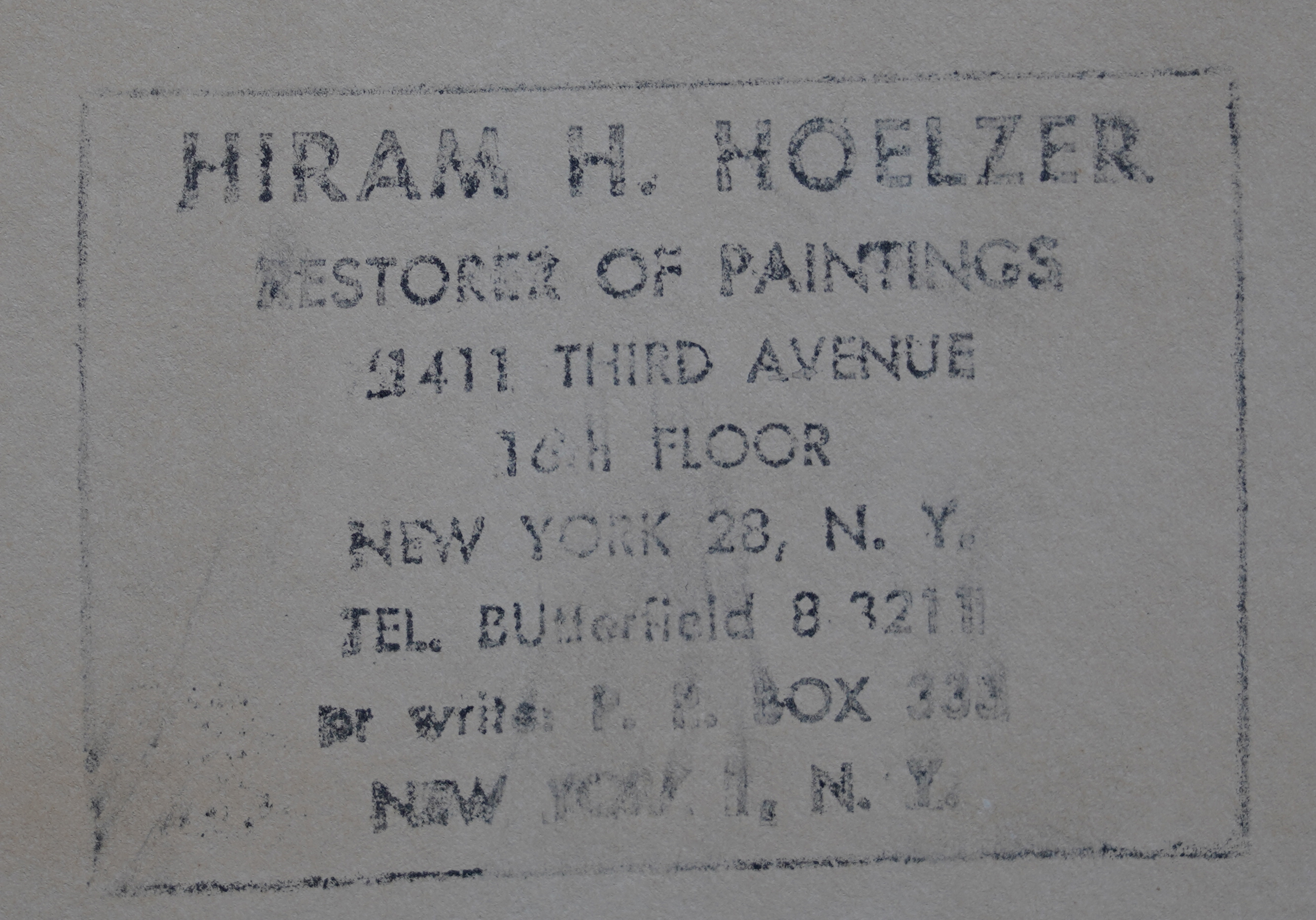 | Provenance | Hiram Hoelzer New York label verso. Portraits Inc. East Street new York. Label verso. |