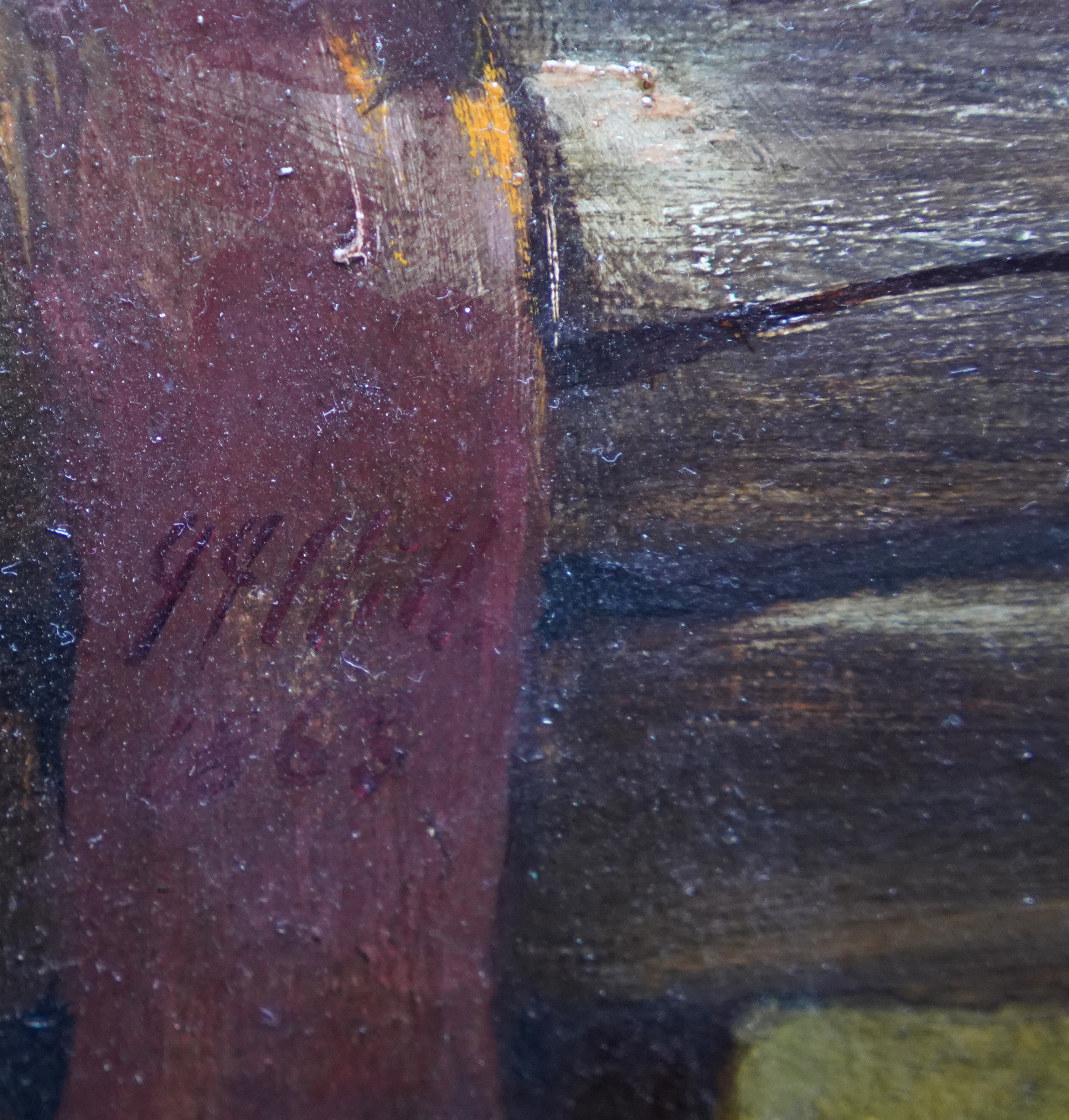 | Frame | Housed in its original gilt frame with oak leaf motif, 42 inches by 36 inches and in good condition. |