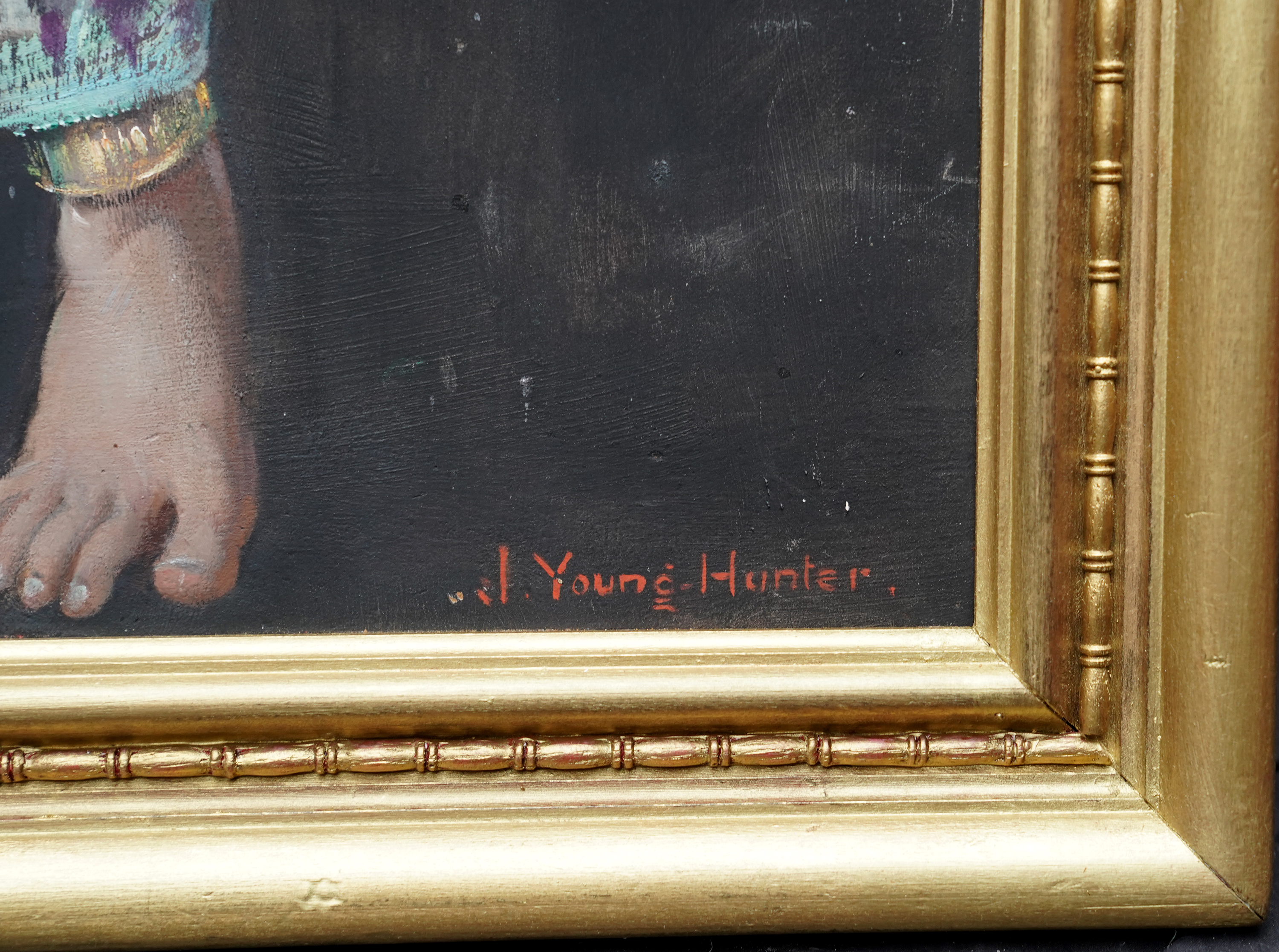 | Biography | John Young Hunter (1874-1955) was born at Glasgow on 29 October 1874, son of marine painter Colin Hunter, R.A., (1841-1904) and his wife Isabella Rattray née Young (1852-1940), a distinguished pianist, who married at Govan, Lanark, Scotland on 29 October 1874, Colin Hunter was a close friend of artist John Singer Sargent (1856-1925). John was educated at Linton House, St Paul's and studied at Clifton College, Bristol and at the Royal Academy Schools under Sargent, winning two silver medals, as well as studying at the University of London. He married at Kensington, London in 1899, Mary Young Hunter, née Towgood, but they divorced about 1920 when John married at Manhattan, New York on 3 January 1921, Eva Renz Schroeer (1888-1967) and they had an only daughter. A figure and portrait painter and an Associate of the Royal Society of Portrait Painters 1914, exhibiting at Royal Society of British Artists; Fine Art Society; Royal Glasgow Institute of the Fine Arts; Walker Art Gallery; Leicester Galleries; Manchester City Art Gallery; New Gallery and at the Royal Academy from 1895. He also exhibited at the Royal Institute of Painters in Water Colours and the Royal Institute of Oil Painters, from London 1894 and 1908, Moreton-in-the-Marsh, Gloucestershire in 1902 and from Wickhambrook, Suffolk in 1904 where he had settled at Gifford’s Hall and where their daughter Gabrielle Young Hunter was born in 1905. In 1911, a 35-year-old artist living at 9 Launceston Place, Kensington, London with his 38-year-old wife Mary and their 5-year-old daughter Gabrielle, with a nurse and two indoor servants. On 20 May 1913, Hunter sailed for Montreal, Canada and in 1915 was on the 'Lusitania' for New York, USA, pursuing his fascination with American Indians whom he had seen in Buffalo Bill's ‘Wild West Show’ in London. He again returned to England for a brief period, serving in the Royal Army Medical Corps in 1918, but in 1920 returned to America living at Santa Fe and Taos, New Mexico. Cutting his connections to the European art world, he settled in Taos and became a part of the colony of artists around Mabel Dodge Luhan (1879-1962). He had a home and studio on the eastern edge of Taos and replaced his painting of society portraits with that of Indian subjects, landscapes, and still life. John Young Hunter died at Taos, New Mexico on 9 August 1955, leaving effects to his widow, Eva Renz Young-Hunter. His work was hung at the Tate Gallery in England and in Paris at the Musee de Luxembourg. He signed his works 'J. YoungHunter' joined. |