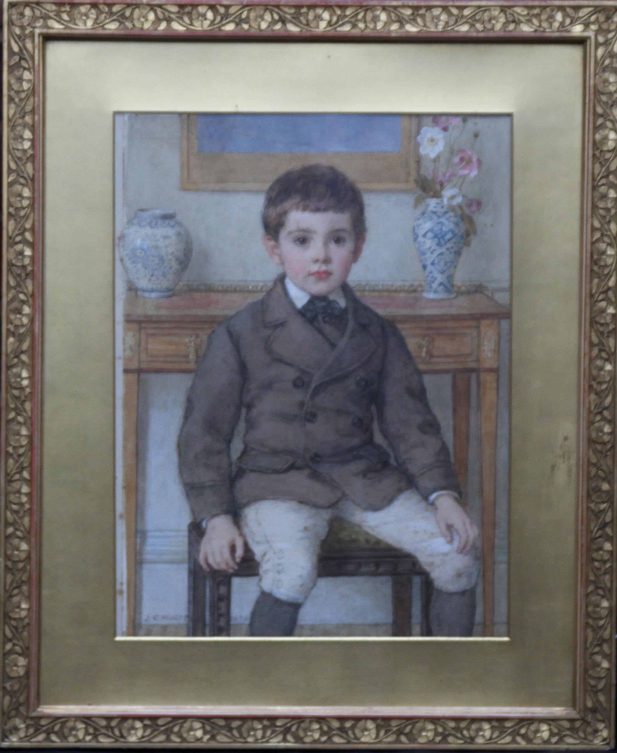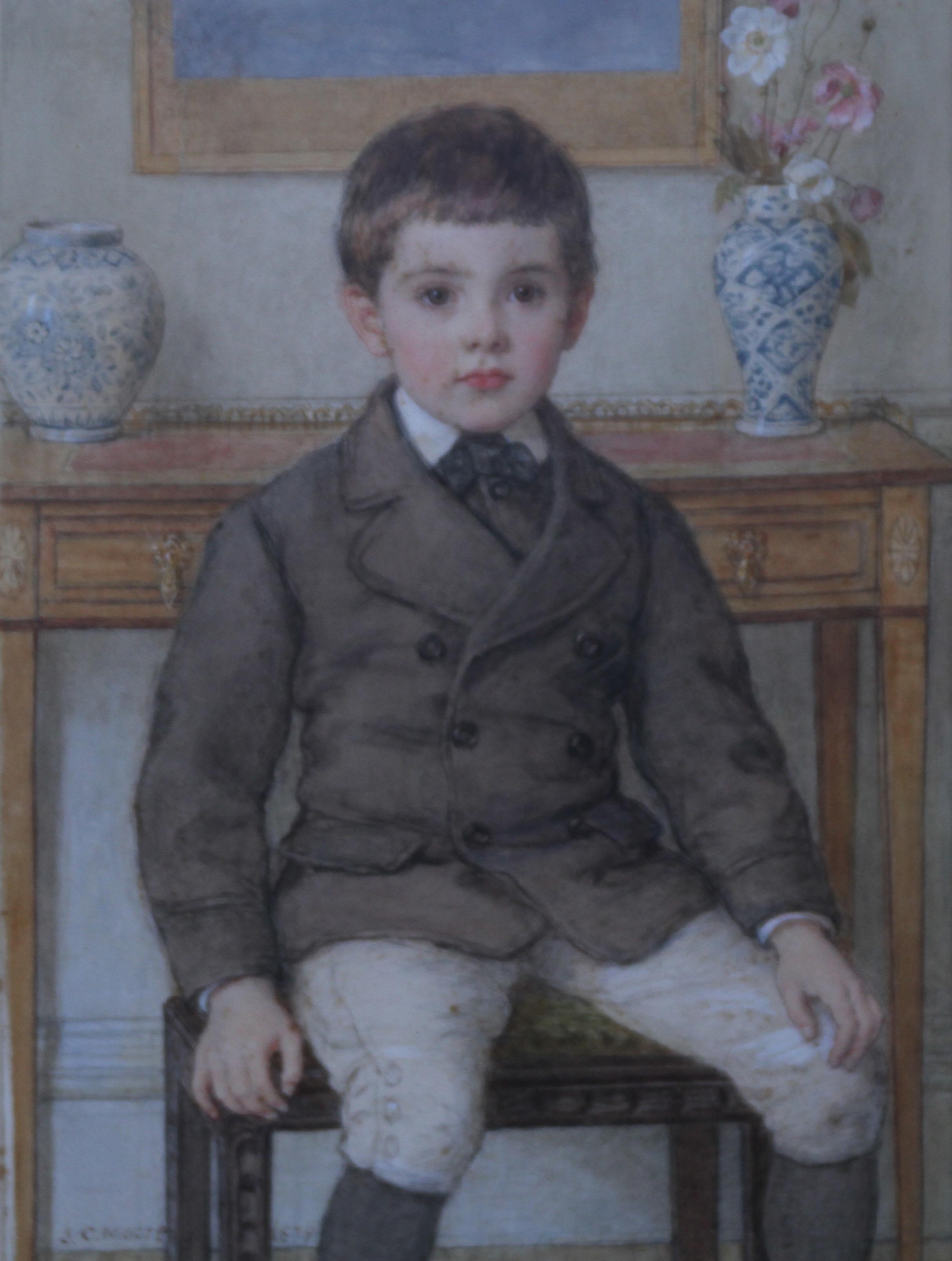 | Description | A beautiful colourful 1877 Pre-Raphaelite portrait of James B Hitchens as a boy. It is three-quarter length seated in an interior with some interesting Chinese vases. A rare and fine portrait with beautiful colour and in its original frame. |